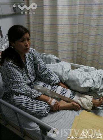 23号上午,记者在江苏省中西医结合医院见到了陈女士。她告诉我们,自己是做早点生意的。19日一早,她骑车经过兴智路时、刚巧碰到有一位市民想买早点,陈女士刚停车,就发现有城管执法车经过。陈女士说,随后他们双方一个跑,一个追,早点车发生了侧翻、直接压在了陈女士左腿上,造成了左侧韧带撕裂,需要手术。