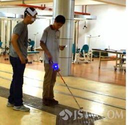 南京理工大学学生刘裕介绍,把盲道上面的交叉点,全部布上这种标签以后,在地上就形成了一个网络。盲杖前面有一个信号接收器,比如说超声波,它可以探测距离,还有一些封匀器来提示盲人是否有一些异常情况。还有一个部分就是熟悉的手机app,它是通过靠语音来提示盲人。盲人手持电子盲杖进入地铁站,只要到达有楼梯、转弯口、障碍物,或者需进站、买票、乘车的地点,都会收到语音提示。
