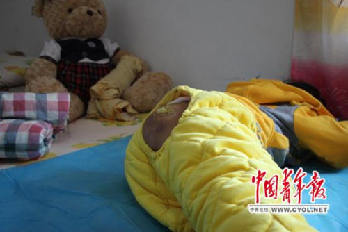 当天上午,孩子就被送到该镇治疗烫伤的卫生室,对孩子进行先期治疗。紧接着,朱邵峰就召开了一次镇党委会,决定镇里拿出钱先救治孩子。同时,让副镇长赵佳伟组建一个由乡政府工作人员和大学生村官组成的陪护小组,保证治疗期间有3个人对孩子进行看护。
