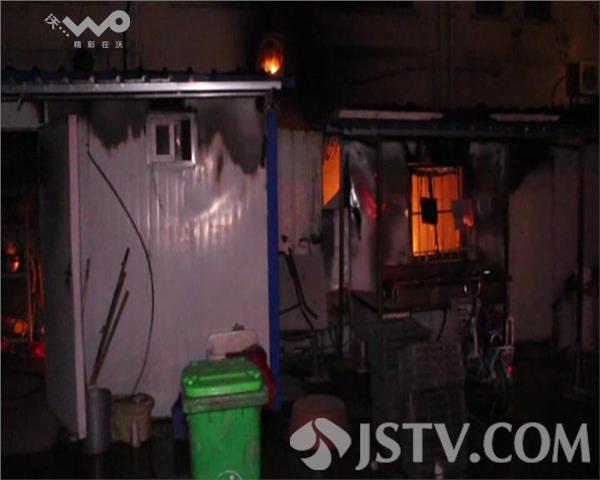 昨天晚上8点多,淮安市香港路义乌商贸城后面,一处小饭店厨房发生火灾。消防官兵发现,起火的厨房位于饭店后方,且厨房为易燃的泡沫夹芯板搭建。当时现场火势较为猛烈,大火已经从厨房内蔓延到外墙,引燃了旁边的空调。如不及时控制,极易引发更大的灾情。
