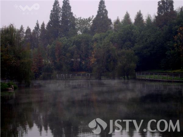 昨天11月24日,南京迎来了今冬的第一场雪。今日清晨,鼓楼区金川河河面上出现一层厚厚烟雾。看上去“热气”腾腾,犹如仙境。大约在9点左右才渐渐散去。吸引晨练市民驻足观赏,啧啧称奇。