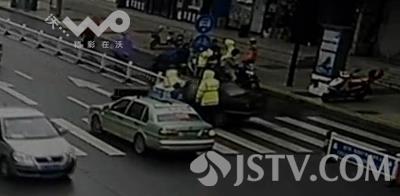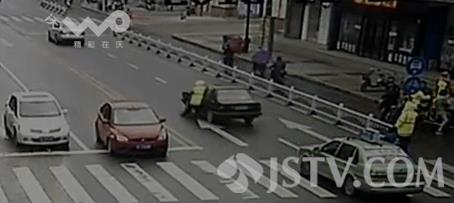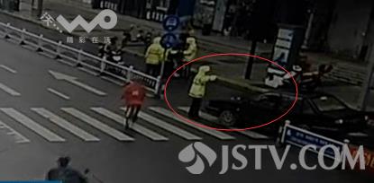 昨天早上8点多,江苏南通海门东苏闽和其他同事在解放路静海路口执勤,执勤过程中他发现一辆黑色普桑沿解放路北侧非机动车道由东向西行驶,违反了相应的交通法规,于是东苏闽上前将其拦下,并准备对车主进行教育和查处,但却遭到了车主的拒绝。正当东苏闽准备再次劝说车主时,不料车主突然踩下油门,东苏闽一下子被车门带住,被往前拖行。