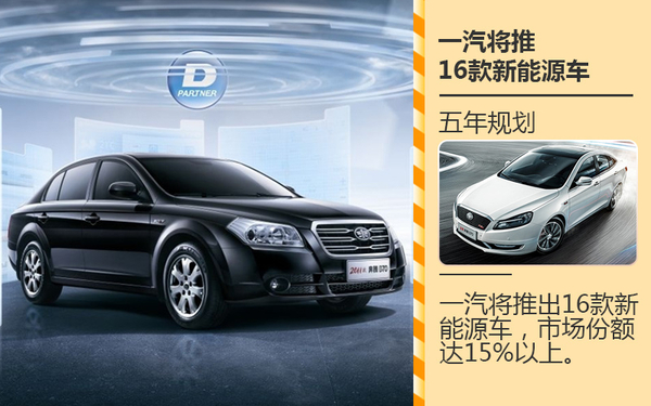 据一汽战略规划显示,至2020年,一汽将推出16款新能源车,并实现6个新能源整车平台,新能源市场份额达15%以上。为了达成这一目标,一汽将分三步实施计划。其中,2016年,一汽将完成重点车型的开发;2018年,一汽会完成新能源产品的规模化和产业化;2020年,则将实现“十三五”的新能源目标。