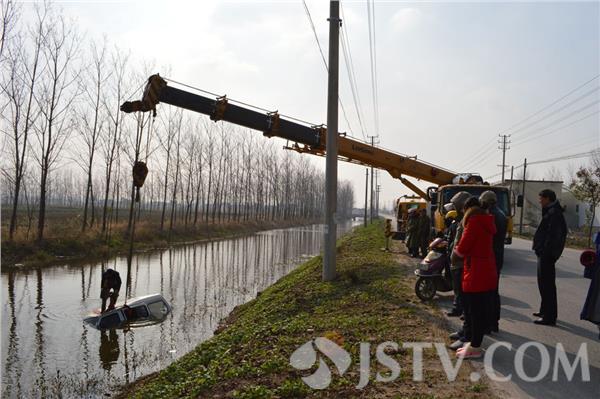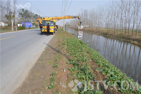 11月26日上午8点多钟,记者接到多位市民的电话爆料称:在省道226线射阳县临海镇二垛桥北侧路段,有一辆小面包车开进河里了,事故清障人员正在使用起吊车辆进行起吊,人员伤亡不清楚。