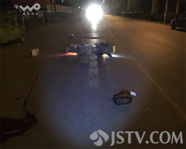 记者赶到事发现场时110、120己经到达现场了,看到一辆电动车又拖着一辆电动车停在路东的路边,电动车后左边被摩托车撞坏,摩托车驾驶员躺在路中间的地上,脸上都部是血摩托车驾驶员基本昏迷,120医生正对摩托车驾驶员简单的包扎立即送往医院,在路中间倒着摩托车大灯还亮着,摩托车后面还有一只头盔和伤者的鞋子,旁边有一大滩血迹,估计摩托车驾驶员伤得不轻。据电动三辆车驾驶员介绍他当时由南向北行驶因为三辆车上又拖了一辆三轮车听到后面有响声就下来看,刚停下就听到后面轰的一下撞上了,他就看到摩托车摔到前面就立即报警了。
