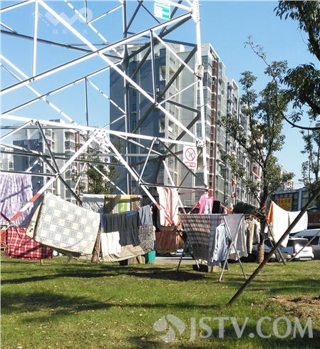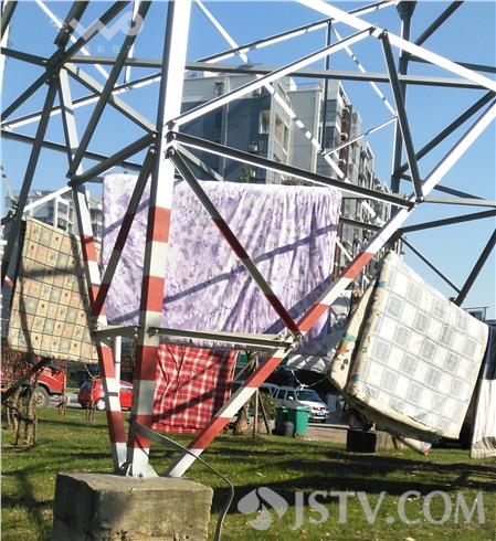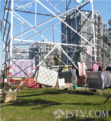 久违的太阳刚出,市民们纷纷凉晒衣服、被子,可是荔枝新闻通讯员中午路过六合区葛中路尚品苑小区附近时,看到万伏高压线铁塔上面竟然有人凉晒衣服、被子,看上去真是有点危险。笔者先路边开出租车师傅了解一下,这些都是小区门面房做生意的人晒的,不是今天才晒,平时被子、衣服都是挂在上面晒,不放在上面他们也没有地方晒,有时候城管看到也会清理,都是他们也不可能天天来巡查,危险不危险他们也不知道。中华人民共和国《电力法》第五十三条规定;任何单位和个人不得在依法划定的电力设施保护区内修建可能危及电力设施安全的建筑物、构筑物,不得种植可能危及电力设施安全的植物,不得堆放可能危及电力设施安全的物品。希望市民朋友还是从自身安全考虑,尽量远离高压设施,避免发生意外。