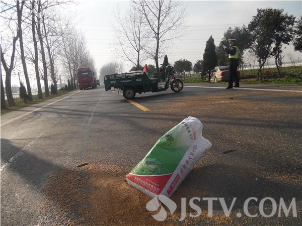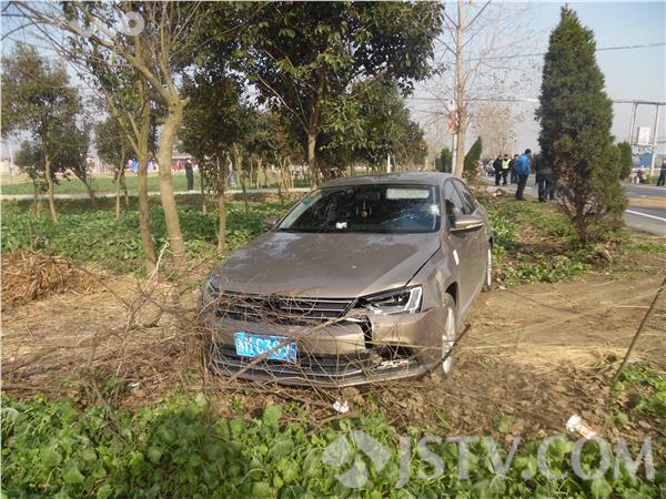 笔者赶到现场时,只见一辆电动三轮车车头朝西,车尾朝东横在公路上,三轮车北侧散落着一只装着麦子的编织袋,旁边到处散落着小麦,一辆桑塔纳小轿车停在公路西侧的菜地里,车头已经被撞得裂开了花,车前的桑塔纳标志也被撞飞,车前挡风玻璃已经呈蛛网状,公路旁边的一根红色警示桩也被连根拔除,据小轿车驾驶员介绍,他开车由北向南时这辆电动三轮车由南向北突然向西岔道拐弯,他急忙向右避让,但是三轮车也跟着同方向转弯,小轿车在撞倒公路边的警示桩后还是与三轮车相撞,据附近居民介绍两车相撞后三轮车驾驶员摔下倒在路边,随后接到报警的交警将伤者送往医院急救,目前伤者因为生命垂危已经转院救治,事故具体原因交警正在调查了解之中。