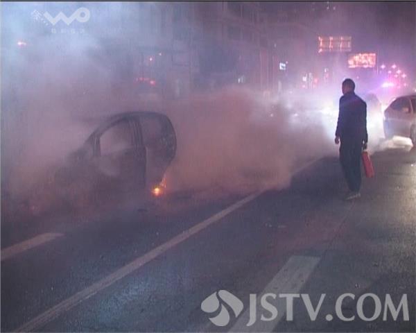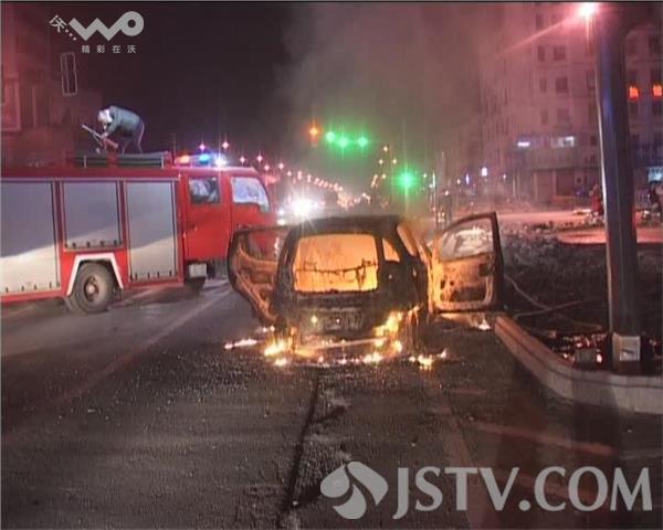 11月27号晚上7点多,有市民报警说,淮安市涟水县安东北路红绿灯处,一辆正在行驶的电动轿车突然自燃。车主胡先生称,当时一家三口开着电动车沿安东路从南向北行驶,当行驶至事发地段时,突然发现汽车引擎盖冒烟起火。胡先生立即把妻子孩子救下车,用路边的建筑黄沙对起火的车子进行扑救,但没有效果,转眼间火势凶猛。消防官兵接到报警赶到现场后用高压水枪进行打击,5分钟后,轿车的火被扑灭,可这辆电动轿车已经完全报废。只剩下骨架。