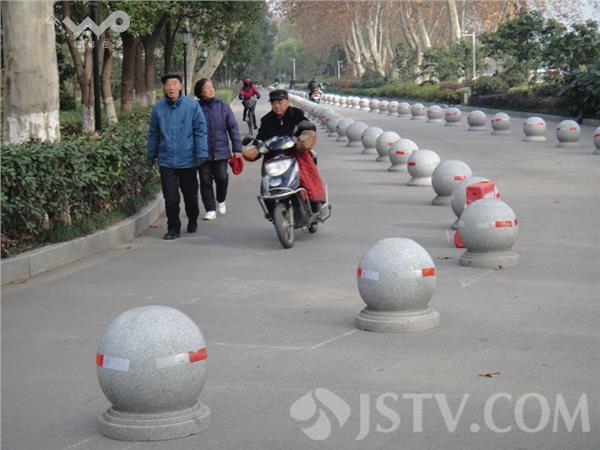 在此晨练的徐大爷说,自从这些石墩摆放上道路以后,各种不同声音不绝于耳。有的说摆得好,它能够治理车辆乱停乱放问题,避免了公园道路交通的堵塞,方便了市民的进出。有的说道路上摆放了这么多的石墩影响市容和公园环境,而且也浪费金钱,是市民不愿看到的。