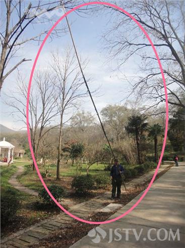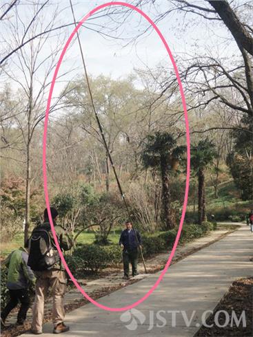 近来,南京东郊中山植物园内的红枫岗景象迷人,吸引着众多南京市民和摄影爱好者前去游览、采风。然而,昨天下午,荔枝新闻网友却在去红枫岗的路上看到了不合谐的一幕:一位中年男子不顾人来人往,举着一根经过捆扎有近十米长的竹杆在大肆敲打核桃。随着男子挥动竹杆的敲击声,一颗颗核桃不断掉落,随之掉落的还有折断的树枝和大量树叶,没过多久树上便变得光秃秃的。见此情景,路过的市民纷纷谴责这种不文明的行为。
