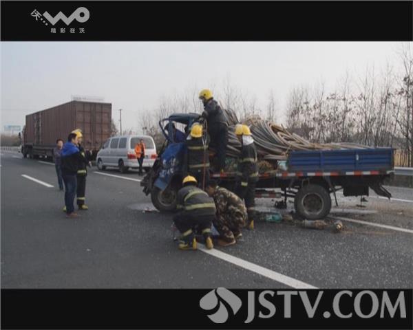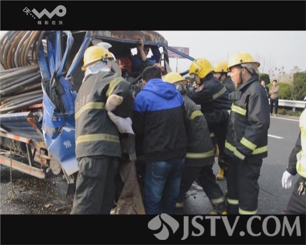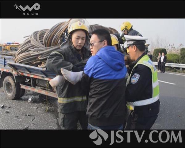 12月1日14时19分,沪蓉高速沪宁段发生一起货车追尾事故,车上3人受伤被困,危急时刻,一名路过的男子挺身而出,与赶来的消防官兵共同展开救援,经过10多分钟的救援,顺利将3名伤者救出。