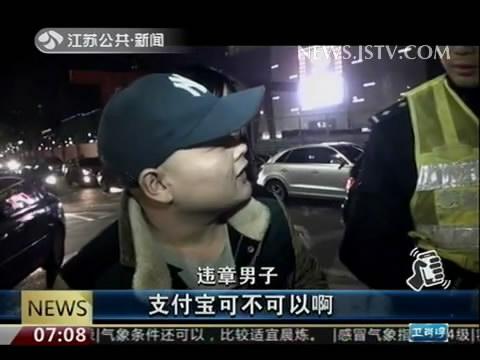 民警让违章男子15天之内到江苏省内的农业银行、邮政储蓄银行把罚款交掉。男子问支付宝可不可以。