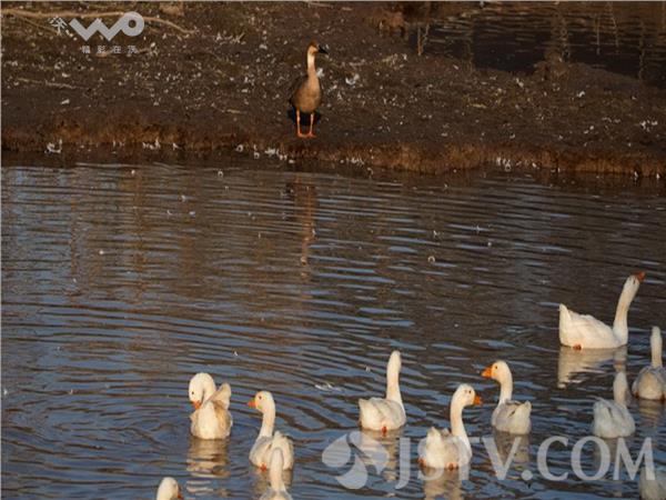 近日,浦囗滨江大道附近,一户刘家村民养了百只大白鹅。三天前,大雁排着队从他们头顶上飞过,然而,早晨刘大妈起床喂大白鹅时,居然,让她喜出望外,百只雪白鹅中,发现多了几只灰色大雁,而且其中一只还赖着不走了,每天与河中大白鹅争吃抢喝,惹得百只鹅情绪不满,与大雁形影分离。