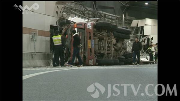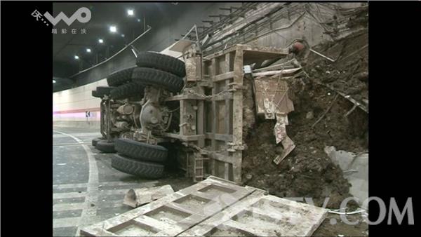 昨天晚上7点多钟,记者赶到南京江山大街隧道现场后,渣土车侧翻在马路右侧,整辆车被撞的面目全非,虽然渣土车变形严重,但司机侥幸逃过一劫,并未受伤,隧道内有十多米隔音板愣是被散了架。隧道管理人员告诉记者,隧道严禁黄牌货车进入,但这已经是第二辆渣土车在此发生事故了。