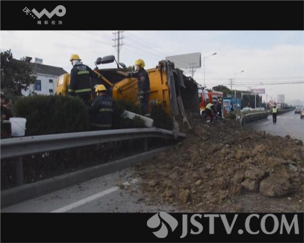 12月4日08时54分,镇江市丹阳开发区消防中队接到报警称,开发区机场路一辆渣土车侧翻,1人被困,接警后开发区中队立即出动1辆消防车、6名消防队员前往救援。