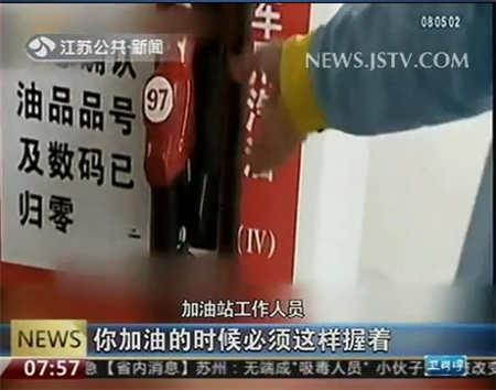 加油站的工作人说,关于静电防护,加油站做了很多措施。加油站工作人员表示,这种经过改进后的加油枪使用的时候必须正确握着,人一旦离开,加油就会自动停止;另外严禁在加油的时候做其他的事情。