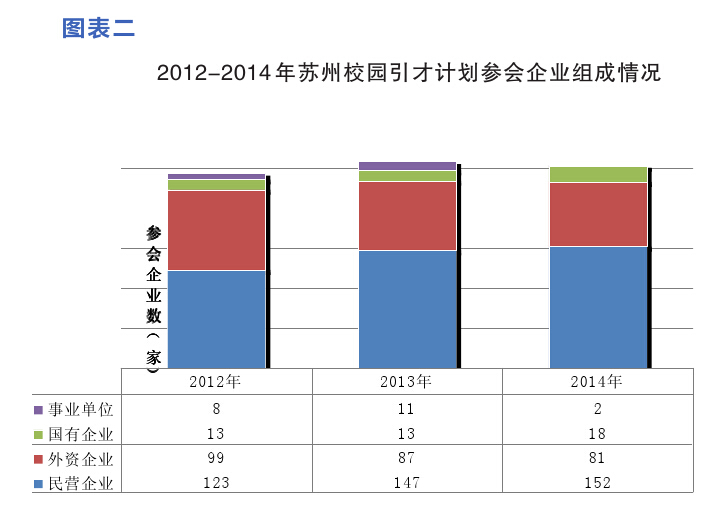 韩科长说“校园引才计划”筛选全国范围内的,与苏州转型升级发展急需专业“相贴合”的高校,同时根据企业诉求,有针对性开辟引才线路。自2010年启动以来,该计划已覆盖全国17个省(市)、27个城市、47所院校。他说,“随着影响力的逐渐扩大,“校园引才计划”参会企业总体呈攀升趋势,其中民企数量持续增加,占据了半壁江山。”