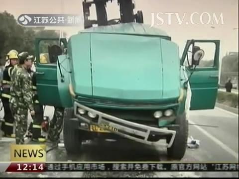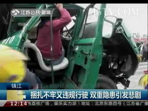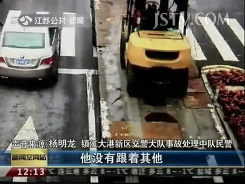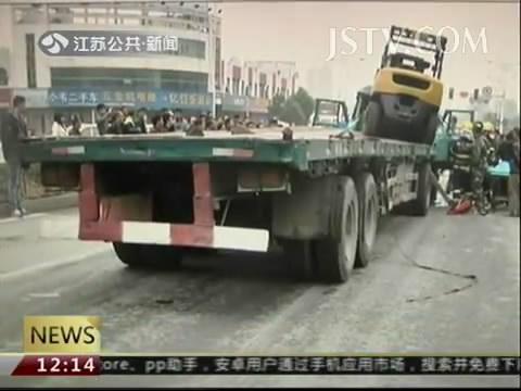 近日,镇江大港新区一辆半挂车托运叉车未采取固定措施,遇到红灯急刹车时,叉车因为惯性对半挂车驾驶室造成严重挤压,造成车内人员一死一伤。