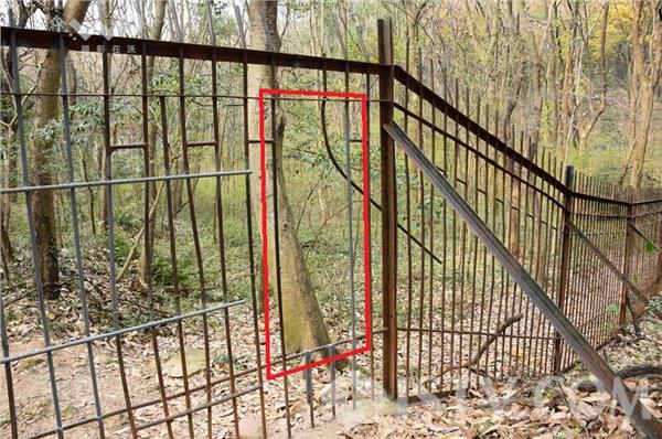 根据指点,荔枝新闻网友找到了该处通道。现场远远看到,前方正有一名男子正经此入园。入口在一处上下陡坡的围栏上,宽约近40公分,一个成年人完全可以轻松入园。从缺口上铁条已被“撇开”一边的现场判断,显然是遭人为破坏所致。就在网友查看的前后约20多分时间内,就有数名驾轻就熟的男女经此通道快速入园。显然,这里已成了一处名副其实的免费入口。