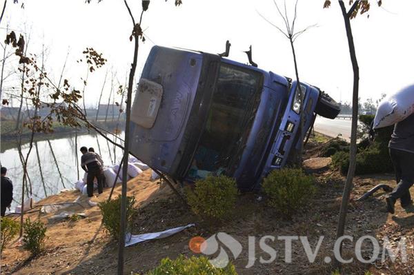 12月6日上午9点钟左右,在省道226线盐城射阳县利民河桥北侧路段,一辆由南向北行驶的大货车突然发生刹车抱死的异常情况,导致方向失控后侧翻到路边的护坡上,所幸没有造成人员伤亡,但车辆损坏严重。