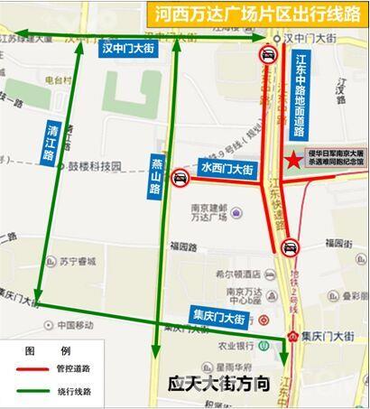 线路二:沿云锦路-集庆门大街-江东中路主线-江东门匝道口(南向北)-江东中路辅道-汉中门大街-城西地区方向