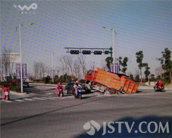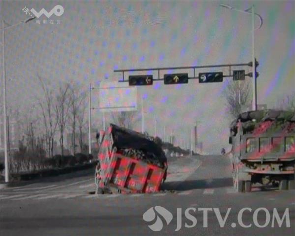 12月8日上午8点左右,盐城市大丰市区五一大道与新村路的十字路口,一辆工程车刚准备拐弯突然路面塌陷把工程车给吞了,吓得驾驶员双腿发软。驾驶员陆师傅坐在车上好长时间才回过神,随后与车队领导联系,车队赶紧调来一辆大型吊车把工程车吊了上来。