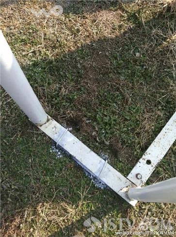 记者来到事发操场,出事的球门宽3米左右,高约两米。球门底部的落地横杠等都有 螺丝固定于草地,但球门不稳,手一推就晃。事发后,学校临时在落地横杠上打了3根钢筋箍住底框。球门为何在孩子的拖拽下倾倒?孩子父亲认为,球门重心明显前倾。