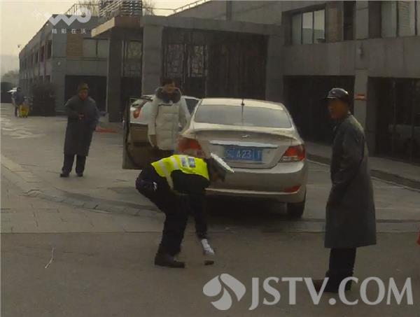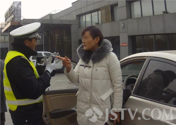 12月8日中午,徐州市泉山交警大队民警丁振洋、唐王斌正在滨湖新天地如意路执勤时,一辆银灰色轿车闯单行道被民警丁振洋拦下,丁警官按照规定告知其执法过程全程录音录像,并要求其出示驾驶证和行驶证。