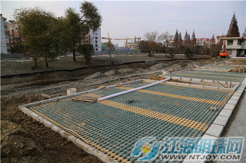 今天下午,记者在濠北路华侨花苑东侧的停车场施工现场看到,工人们正在紧张的施工当中,部分停车位的混凝土植草砖已经铺设就绪。