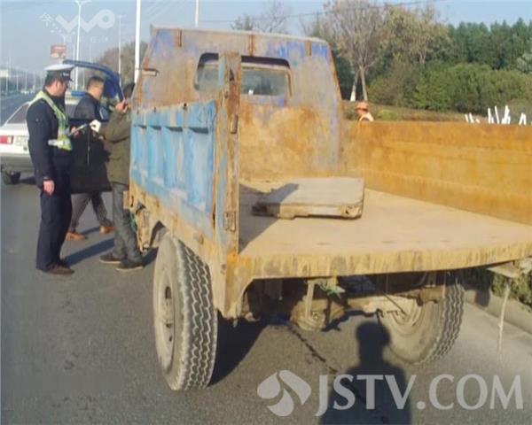 12月9日中午,徐州泉山交警大队民警李辉、尹泉开警车在三环南路巡逻时,一辆无牌照的三轮汽车突然从右边超车,速度很快。看到这辆三轮汽车没有牌照,交警将其拦停后对其进行检查。