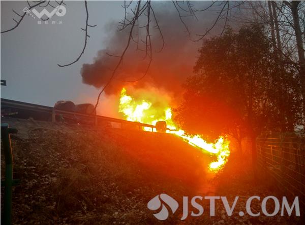 今天(12月10日)清晨5点50分许,在淮安区京沪高速刘伶段境内发生一起车祸,两辆货车追尾引发爆炸并猛烈燃烧,两车司机无一逃生,全部死亡。