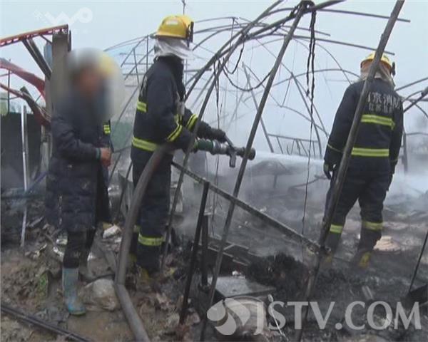 现场浓烟滚滚,消防战士虽然全力抢险,无奈火势蔓延迅猛,很快蔬菜大棚、菜农的棚舍和停靠在大棚边的面包车都被烧毁。