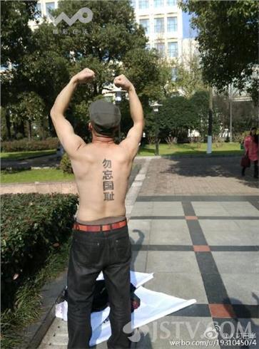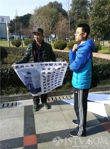 明天就是“国家公祭日”,南京市民正在着手准备一系列纪念活动,不少外地市民也专程赶到南京参加明天的公祭日活动。今天,沈阳的王先生就用自己亲手制作的横幅与图片,在街头向公众宣传“热爱祖国 倡议和平”的理念。
