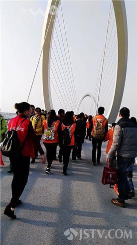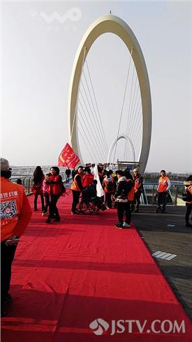 第二站河西的南京眼,对于长期住在福利院的残障朋友是一直向往的地方,去年的青奥会,他们从电视上都看到了,这里可是他们梦中向往的地方,一下车,在公园门口残障朋友激动的心情溢于言表,志愿者也加快了速度,从公园门口到桥上,花了十分钟不到,一上大桥,大家冲向桥中间的砳砳,在这里,志愿者和残障朋友一起按组合影,用志愿者的话说;这是家庭合影,一天的功夫,大家已经从陌生到家人了。。。。。