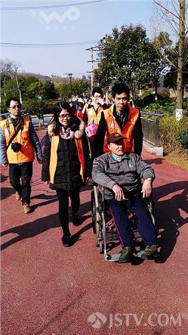活动中,有一个特殊的志愿者,他叫徐*,其实他也是一个残障朋友(走路有点坡)他说;他也长期受到别人的关爱,但他只要有一份力,就要发一份光:福利院的工作人员告诉我们,虽然现在每周都有很多人到福利院来看望照顾他们,也有人会组织残障朋友出去玩,但很少,残障朋友也渴望多多走出去,看看我们这个城市,知道参加这次活动,有的福利院的残障朋友一早就起来了,换好衣服就在门口等我们了,希望这种活动以后能常常举办;王阿姨是个残障人士,在整个活动过程中她说的最多的一句话就是“谢谢”她对笔者说“这活动圆了我们的奥体梦,虽然我们身有残疾,但我们也一直关心体育,2014年的青奥会我们天天看直播,今天总算亲眼看到了砳砳了,志愿者太好了,太辛苦了,谢谢!谢谢!”在南京眼,来自香港的游客周先生看到我们的队伍,竖起了大拇指说“你们辛苦了!”
