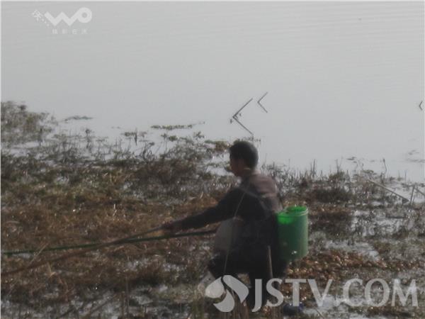 昨天(12月13日)荔枝新闻网友在六合滁河边看到一小伙子正在背着一个电瓶在河边电鱼。在和当事人交谈中了解到,电鱼工具是自己用电瓶车电瓶做电源进行改装,再用一些电线将两根竹竿连接起来,一根接正极,一根接负极。竹竿顶端还设有一渔网,把竹竿放在水里面同时放电,强大的电流把鱼打昏,然后用渔网捞上来。