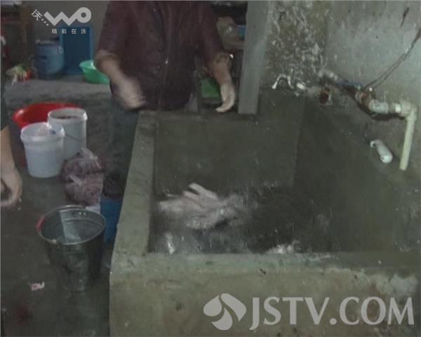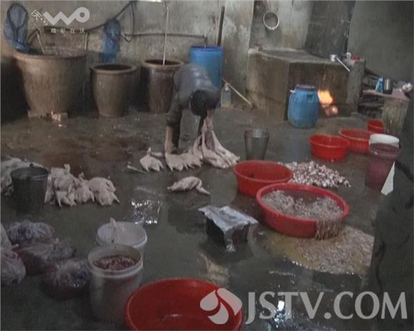 一进入作坊内场,一股刺鼻气味立刻扑面而来,地上污水横流,两名工人随手将褪毛后的鸭子扔在地上。而一旁的下水道附近,褪毛用的松香已经积了厚厚一层。随后,雨花台区食安办的工作人员赶到了现场。面对检查人员的询问,作坊拿不出任何生产资质,也不愿把生产停下来。增援民警和其他部门的执法人员到场后,现场局面才得以控制。