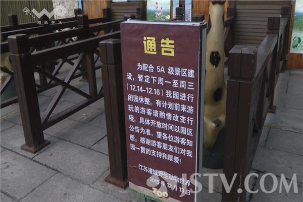 12月15日上午,荔枝网记者来到常州淹城动物世界,果然看到大门有个公告,公告称,为配合5A级景区建设,周一到周三我园进行闭园休整,具体开放时间以公告为准。现场记者看到不少前来游玩的市民,都比较失望。