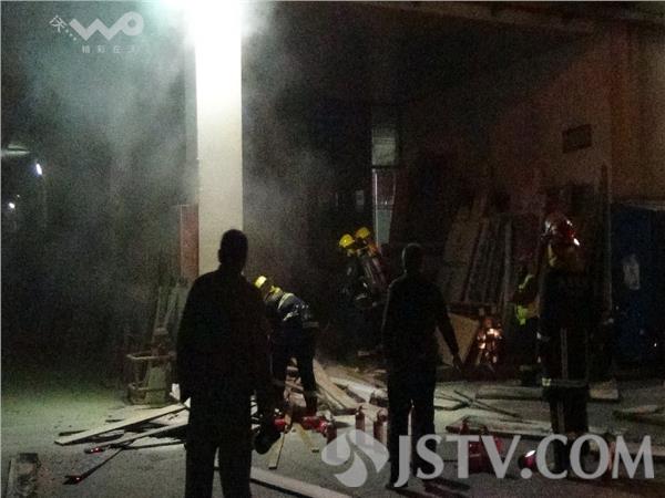 12月16日晚7点左右,南京金桥装饰城的北头一木板库区內失火,幸好两位搬运工人及时发现并叫来保安采取自救扑火,随后,119赶到最终将大火扑灭。初步分析,火源可能来自白天有人乱丟的烟头。