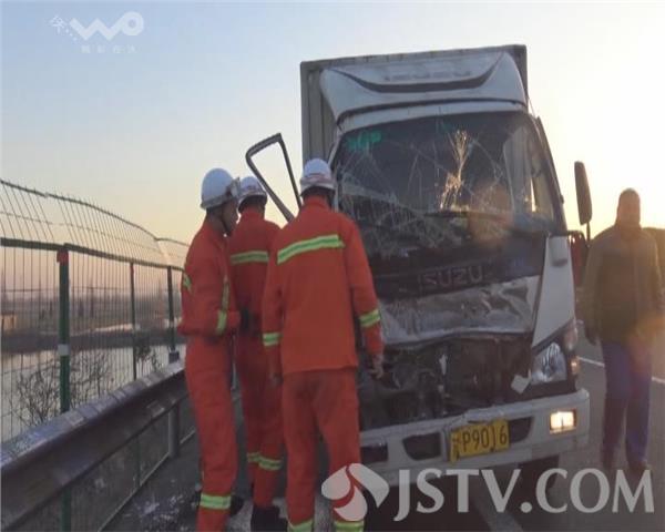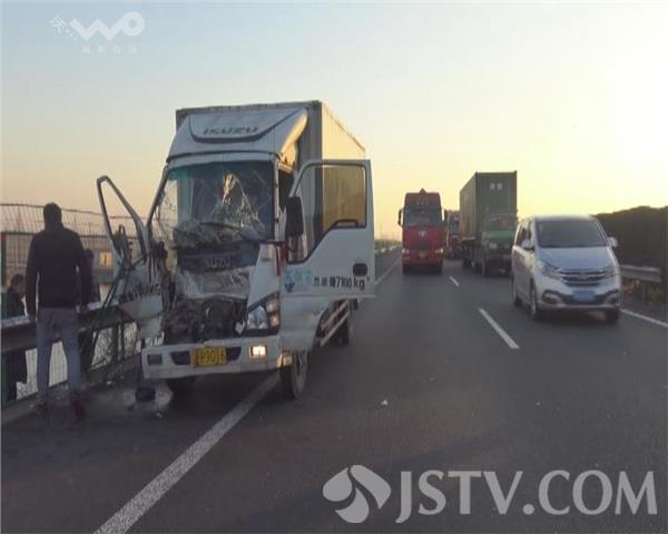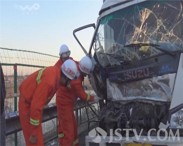 12月17日上午7点左右,京沪高速扬州市江都段发生一起车祸,一货车行驶途中,突然失控,撞上前方槽罐车,副驾驶男子受伤被困,情况紧急。高速交警、消防部门接警迅速赶赴现场救援。