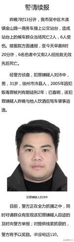 昨晚(12月17日)7时13分许,苏州市吴中区木渎镇金山路一商务车撞上公交站台,造成站台上的候车群众死亡4人、受伤4人。警方迅速锁定了犯罪嫌疑人刘沛中。今天中午11:40分许,警方在230省道岚山别墅附近将刘沛中抓获。案件正在进一步审理中。经警方侦查,犯罪嫌疑人刘沛中,男,31岁,徐州市沛县人,2005年因犯贩毒罪被判有期徒刑2年;已查明,该犯罪嫌疑人昨晚与他人饮酒后驾车肇事逃逸。