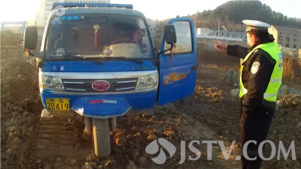 在堵截过程中,交警用喊话器命令车辆停车,而三轮车驾驶员充耳不闻,一直把车开到附近的一家工地内,被逼到死角无路可逃仍然拒不下车,最后车辆被憋熄火了,驾驶员马某把自己反锁在驾驶室内拒不配合。