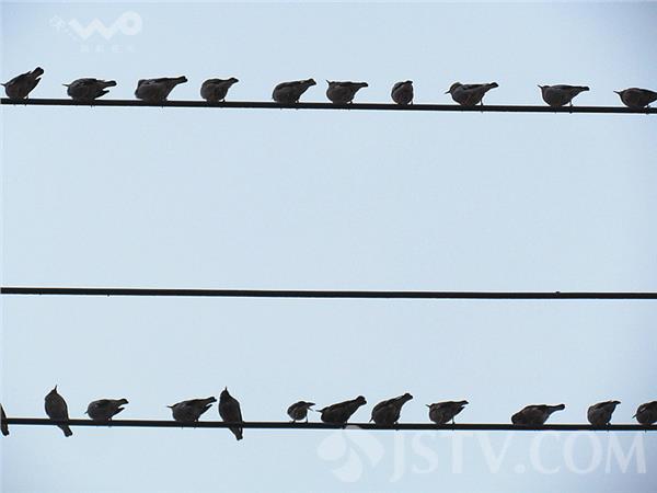 “在城区还能见到这么多鸟,太稀奇了。”19日上午,数百只鸟儿齐聚在南京建邺区中和路的高压电线上,时飞时停,鸣叫不止,像开派对欢乐聊天一样,引来不少市民驻足观看。