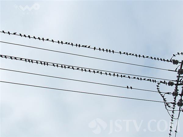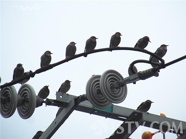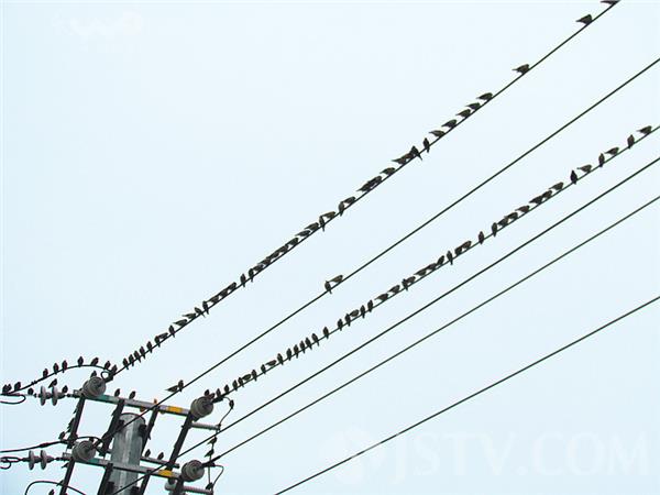 有市民疑问,这些鸟儿不怕站在高压电线上触电吗?据了解,站在一条电线上的小鸟,其两脚之间是存在电势差的。但这个电势差远远低于小鸟身体的击穿电势差,因此电流会从阻值相对小得多的电线溜走,就是电线把小鸟这个大电阻给短路了。所以小鸟不会被电到。 不过,鸟儿也有触电的时候。那就是当它们停在高压电线杆的横臂上的时候,常常在有电流的电线上磨嘴。如果这横臂是不绝缘的,电流就会从鸟身上通过,流过横臂、铁架进入地里,这样一来,鸟儿也会触电身亡。因此,人们在电线杆的横臂上装上了绝缘的架子,这样做,不光是防止鸟类触电,也杜绝了因鸟类触电发生断电,从而保障供电畅通。