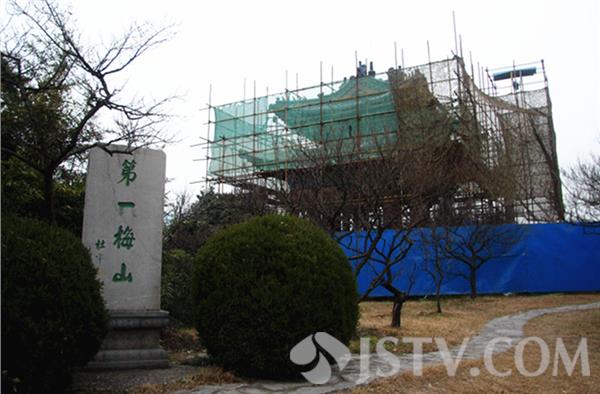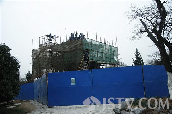 今天(12月21日)上午,荔枝新闻通讯员在南京东郊梅花山看到,位于梅花山顶的'博爱阁'正在围挡维修。据了解,此次维修是因博爱阁屋面年久失修,部分瓦片脱落,对游客构成危险。工程由中山陵园管理局文物处主办,江苏省江都古典园林建设有限承办,整个维修工程约为两个月。中山陵园管理局对“博爱阁”景点维修,给游客带来不便表示歉意。