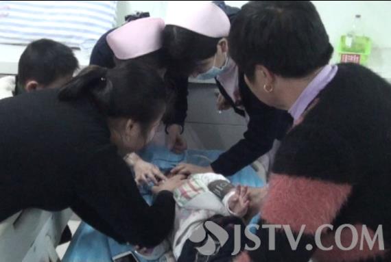淮安市妇幼保健院急诊科医护人员第一时间开启了绿色通道迅速对患病女童进行抢救,经过初步诊断对女婴病情有了一个初步救治方案,医护人员立刻对女婴接上了呼吸氧并注射药物,同时也对女婴进行了输液治疗。经过急诊医护人员一个小时救治,孩子的病情才转危为安。