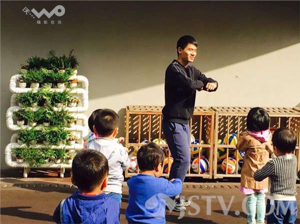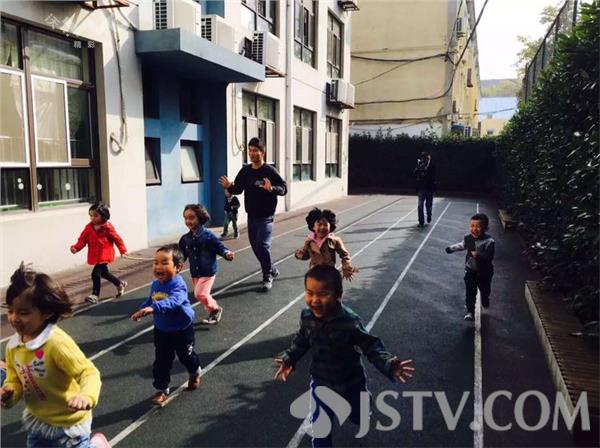 今年9月,马家明正式成为南京市长江路小学幼儿园小(2)班的老师。自称还是“孩子”的他,不仅乒乓球、羽毛球打得好,会修电脑,还会弹吉他、唱民谣。 体育课上,针对孩子们生长发育和年龄特点,马家明特意增加了不少跑跳的体育游戏。有了男老师的保护,小朋友们也更大胆地去“冒险”了。马家明说:“ 你说话的语气,你走路的姿势等等,他都会潜移默化去模仿,所以班上有男性老师和女性老师,对小朋友个性方面、行为习惯、动作方面都有潜移默化的影响。”