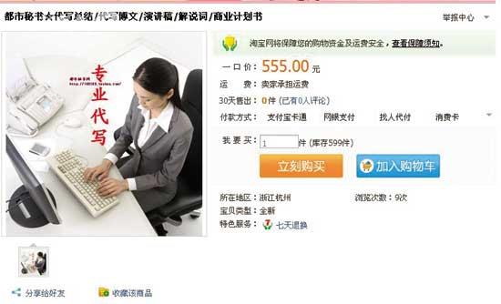 荔枝新闻记者在购物网站上输入“工作总结代写”这一关键词后,立马就跳出了2000多件相关“宝贝”。荔枝新闻记者注意到,这些代写年终总结的网店基本上都声称拥有“机关秘书”、“专业记者”、“策划经理”、“资深写手”等专业写作团队,能够为买家“量体裁衣”,代写各种工作总结。大多数卖家都承诺“保证质量,不满意可免费修改”以及“保证原创,千字内2天交稿”等。
