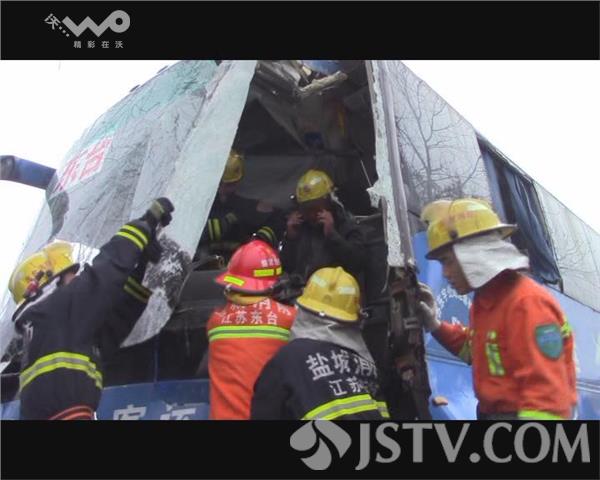 12月20日下午15时,盐城市东台境内204国道安丰境内,一辆货车与一辆客车相撞,客车司机被卡在变形的驾驶室内。接到报警后,当地公安、消防等部门及时赶赴现场处置。