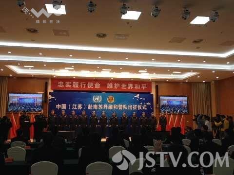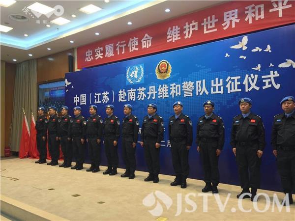 今天,12月21日(周一)上午,中国赴南苏丹维和警队出征仪式在省公安厅院内举行。根据公安部的授权,江苏省13名民警组成中国赴南苏丹维和警队,于12月26日前往南苏丹执行为期一年的维和任务。省公安厅为出征队员举行出征仪式。宣誓词是:我们是光荣的维和警察,面对国旗,我们庄严宣誓:忠于祖国,忠于党,坚决做到听党指挥,为国争光;严守纪律,树好形象;不畏艰险,顽强拼搏;恪尽职守,努力工作;牢记重托,不辱使命;圆满完成任务,维护国威警威。
